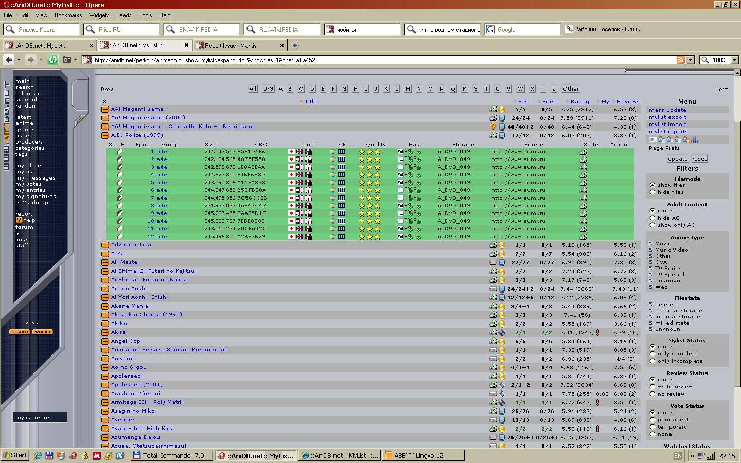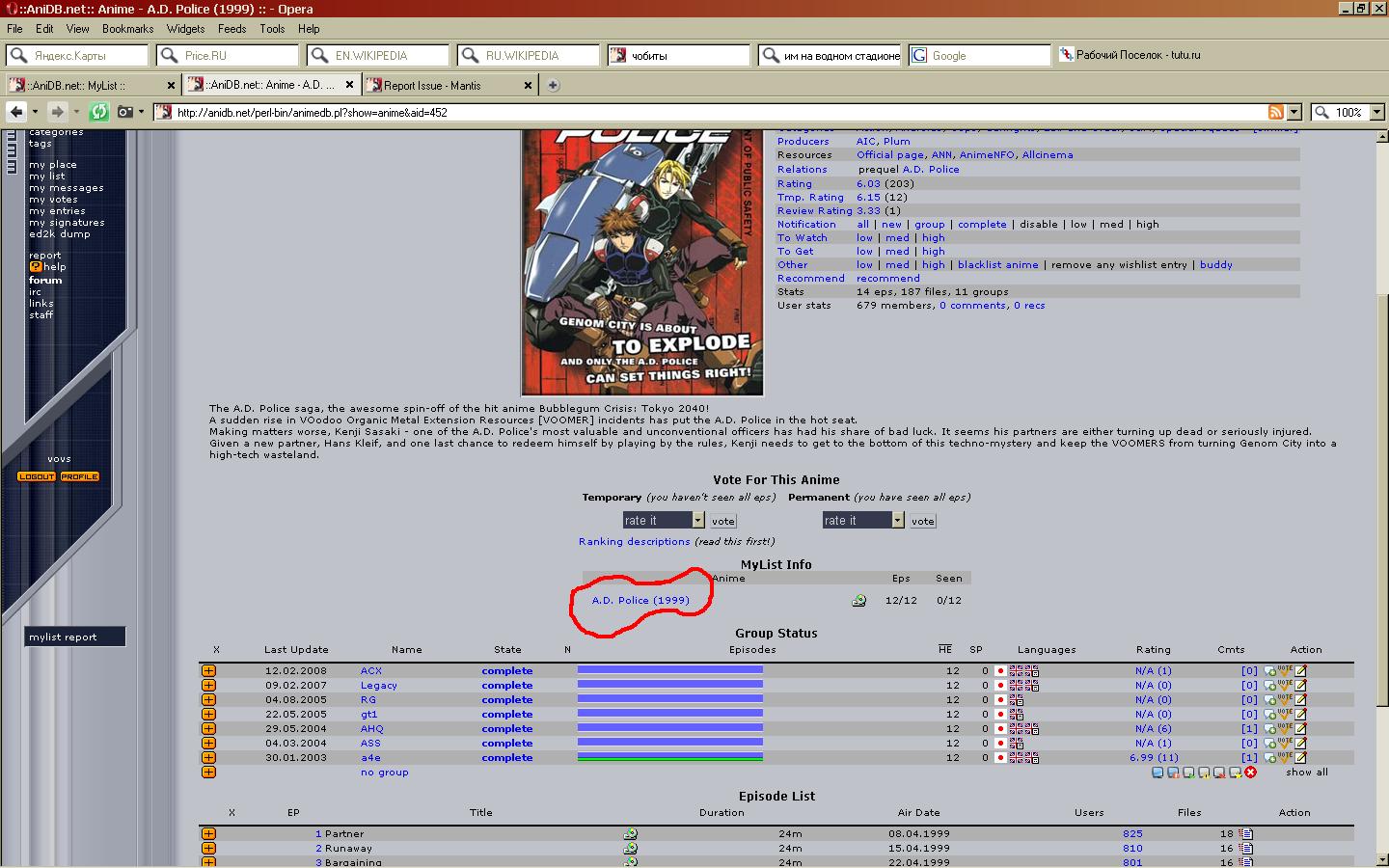 | Description | after recent anidb update when i go to mylist by link in "mylist info" (1.jpg) table in animepage, i can't see any editing buttons in mylist page (2.jpg). i've tried Opera 9.51 and IE7. | ||||