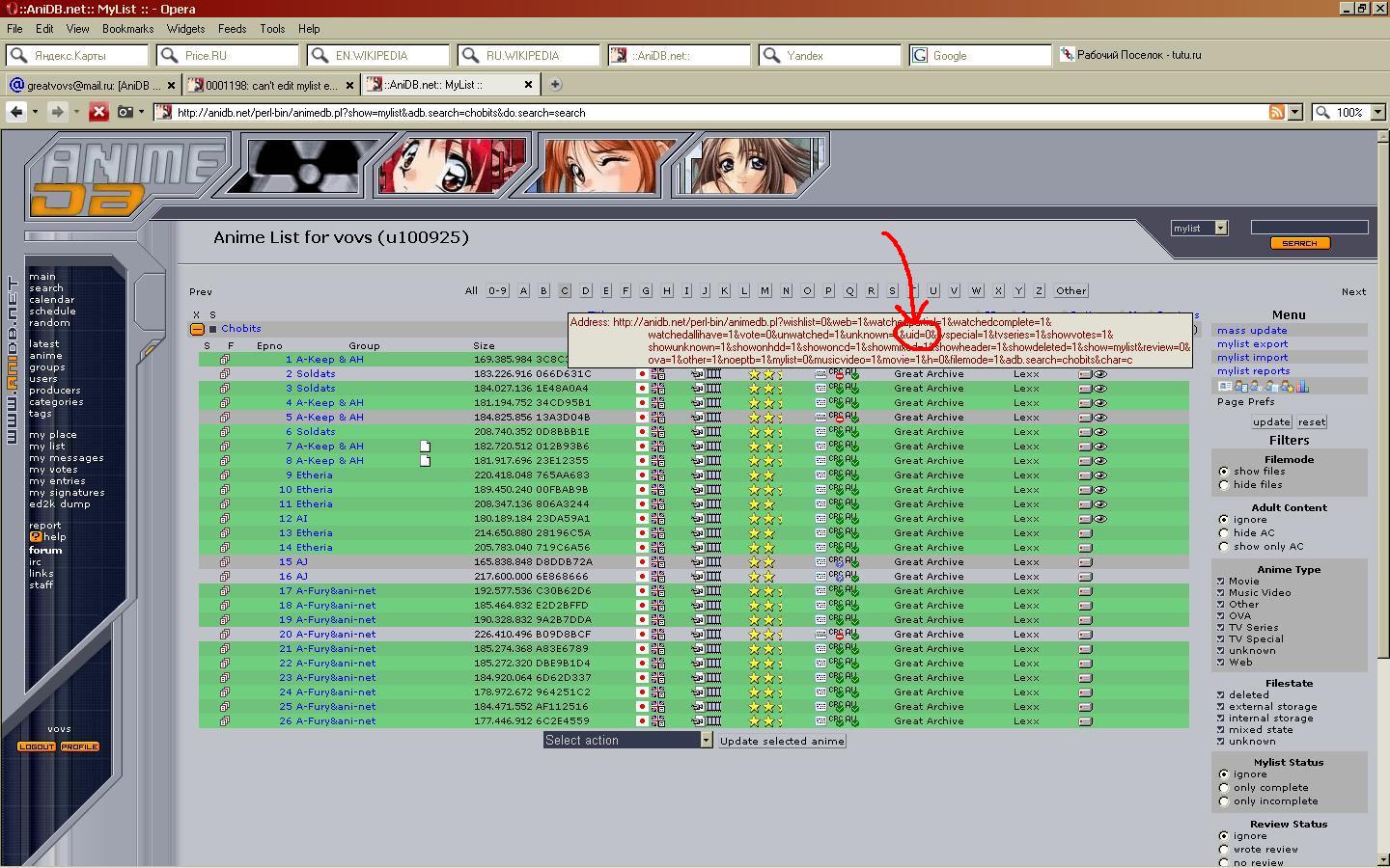 maybe it's because the 'uid' variable is equal to '0' (if after search for example 'chobits' i put cursor over [C] letter it shows that the link contains 'uid=0') (3.jpg) |