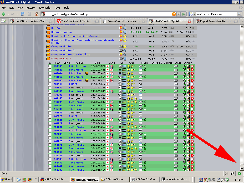 | Description | 100% proc usage and long running script warning in Firefox after doing a simple file remove operation. what I do: 1: access an anime mylist entry from the "Mylist" link in the "My" tab on any anime page. 2: select some file (checkbox) 3: selecte remove in the actions choose and hit the "Ubdate selected files" button. The form is posted and the page reload. 4: proc goes to 100% usage, page never finish to load, Firefox popup a warning saying a script is taking too long and ask if I want to stop it. 5: after stoping the script, I can see all anime I have in mylist are listed starting from 0 up to the alphabetical position of the anime I edited (very huge list) | ||||