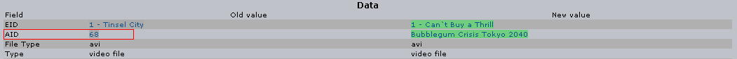| Description | On the creq page the old value AID is displayed instead of the old value anime title. | ||||
