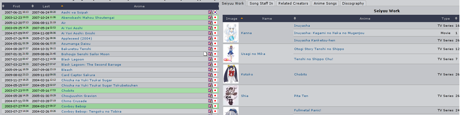 | Summary | 0001799: Seiyuu work / Anime titles highlight | ||||