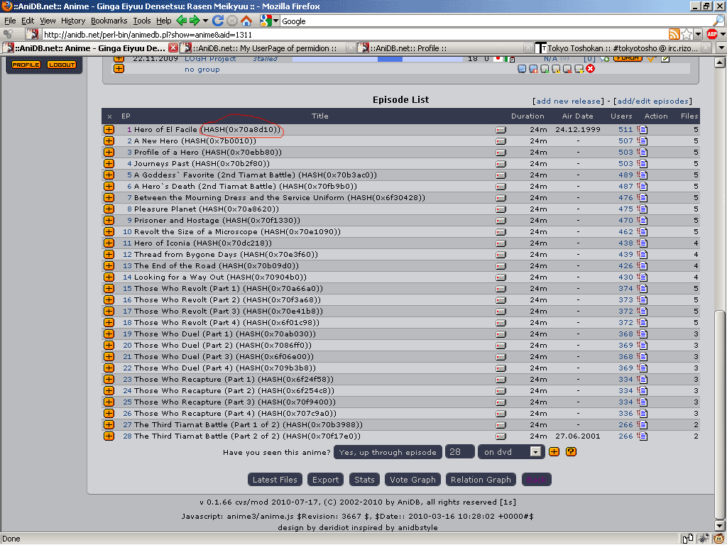 | Description | when using the ajaxified interface and selecting the option to display the jap title beside the english title for episodes, now something like (HASH(0x74b5fc0)) is being displayed beside the english title instead of the jap title current: Hero of El Facile (HASH(0x70a8d10)) expected: Hero of El Facile (??????????) see attached screenshot | ||||