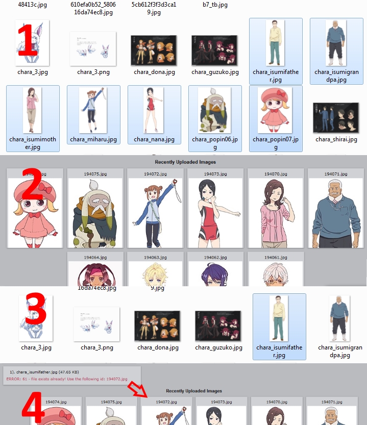 in the example above it is also the case when not only one picture is messed (when the pic just gets an existing ID) but also by combining them the second pic gets the thumb from the first so now a correction is needed for two pics. https://img7.anidb.net/pics/anime/194072.jpg https://img7.anidb.net/pics/anime/thumbs/50x65/194072.jpg-thumb.jpg |