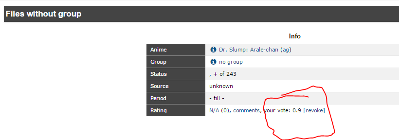 | Summary | 0002728: Animegroup page: erroneous vote entered on no-group release page | ||||