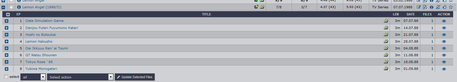| Additional Information | Example to make it clearer: once, I added files to MyList from the third Lupin Sansei series, but some episodes weren't in the right place, so in MyList it showed up as if I had 49/50 episodes. I made a creq to move the file that had been mistakenly set to the wrong episode, and later it got granted. When I came back to MyList it still showed 49/50 under Eps, even though when I expanded the entry it showed properly the 50 episodes. | ||||