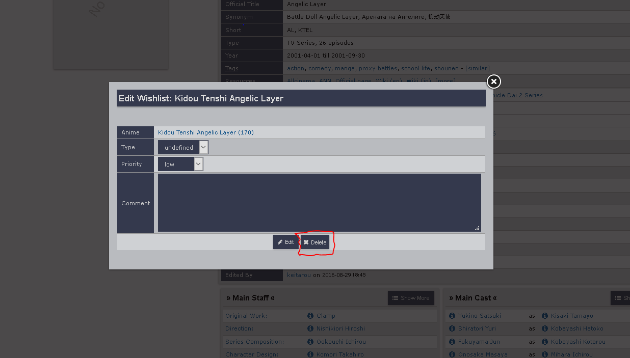 | 2017-07-05 14:49 | DerIdiot | Summary | Anime Page Table Layout Glitch => Anime Page: on removing anime from wishlist (from lightbox) the updated row is using the wrong values |