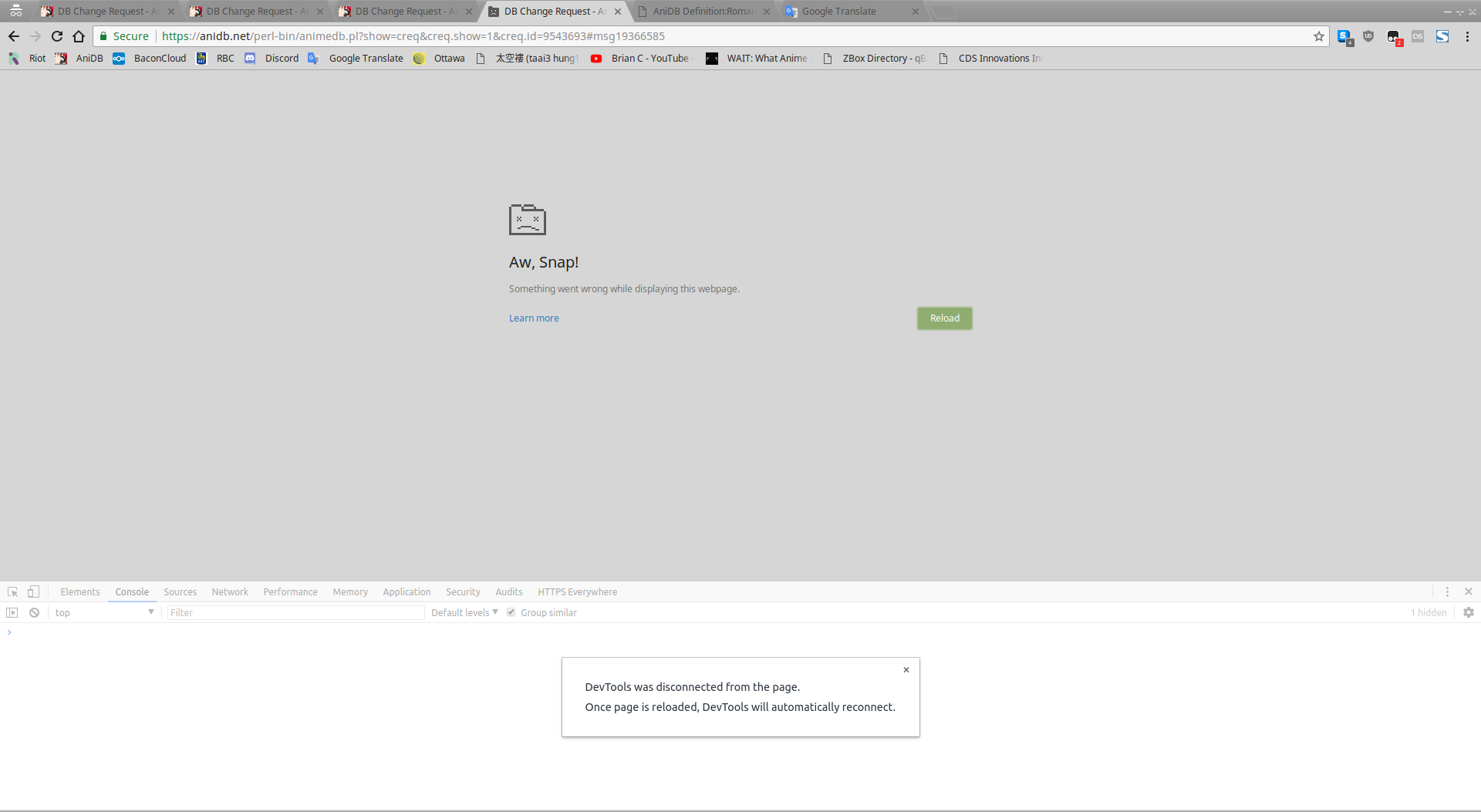 | Description | On Chrome, on both Windows and Linux, if you submit a form (reply with a message, modify the creq, modify a message, etc), the page will crash as per the screenshot, but the form ultimately still submits. If you reload the page you'll see the change was committed, despite crashing on rendering. | ||||