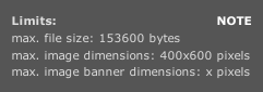 | Summary | 0003406: Picture upload: Banner width and height values missing in limits note | ||||
