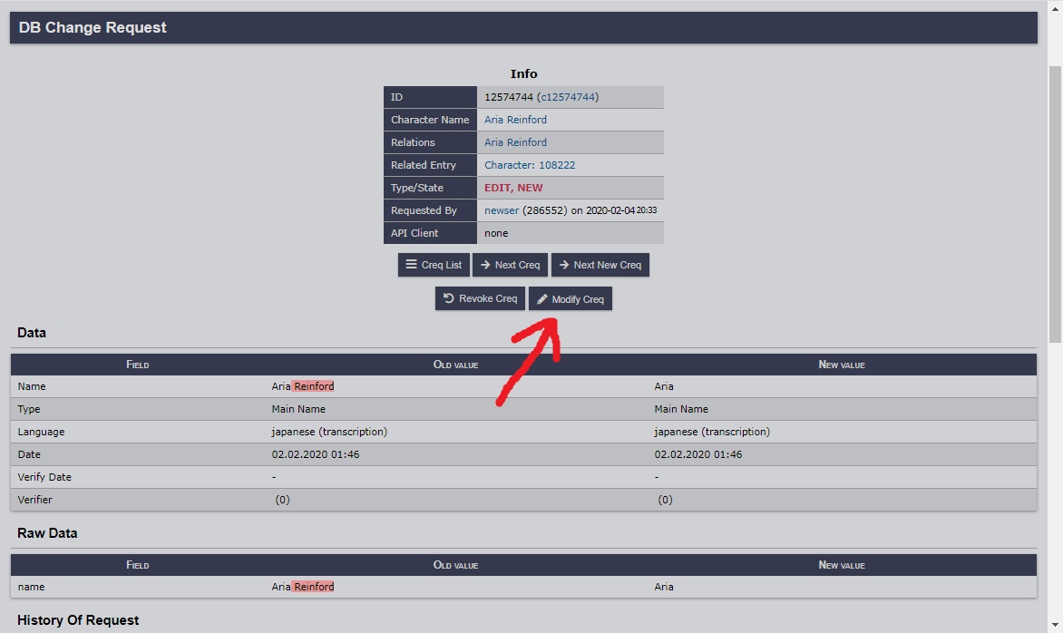 | Summary | 0003417: No "Comment for Mod" field when editing Credits (Text) relation and no "Modify Creq" button in the issued creq | ||||