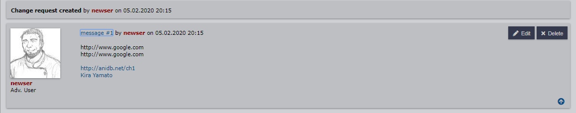 | Summary | 0003420: Links aside from to anidb.net not work in creq comments | ||||