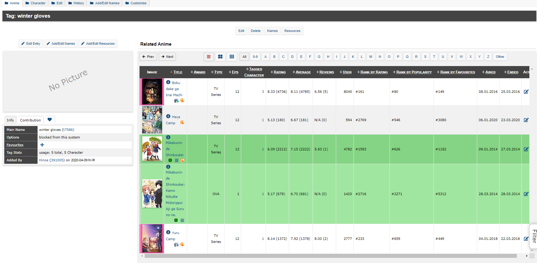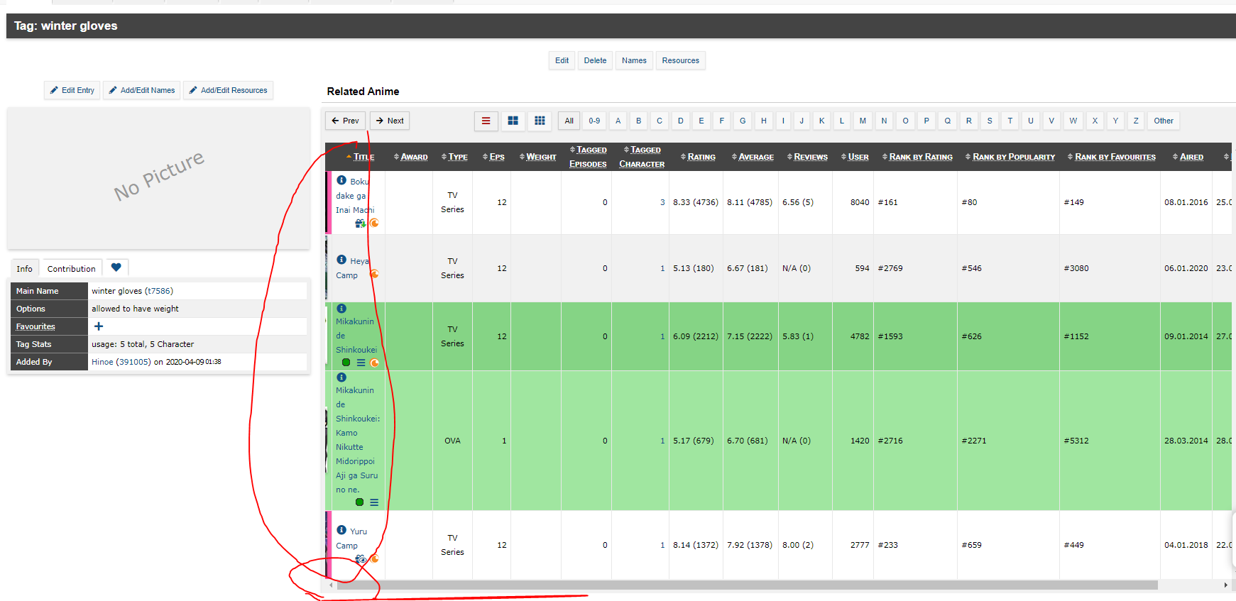 | Summary | 0003425: Tag entry page, for the anime entries page the anime table is cut off | ||||