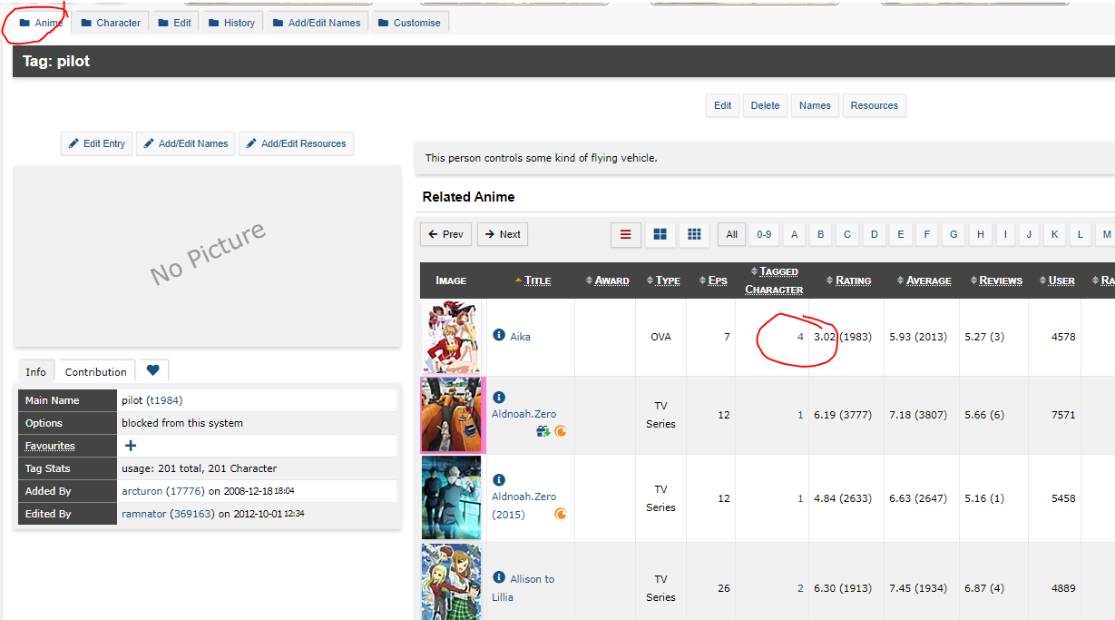 | Description | On "Advanced Character Search", allow us to specify an entry in which search results should be restricted to, instead of finding all of them. For example, there are 200 characters tagged with "pilot", but I only want a list of pilots from LoGH, I can see there are 8 of them, but I have no way to know which characters are pilots without going them through them individually. In fact, it would nice if clicking a tag on "Entry -> Character Tags -> Related Character" would automatically direct you to the result of the search. | ||||