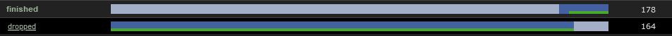 | Steps To Reproduce | e.g. https://anidb.net/anime/56 Highest episode number = 178 Group A: Done: 161-178, in mylist: 165-178 notdone 90% | done 2% | done mylist 8% Group B: Done: 1-164, in mylist: 1-164 done mylist 93% | notdone 7% The shading to EP164 would be 164/178 = 92.13% but this has been rounded up so there is an apparent shading overlap of 1%. | ||||