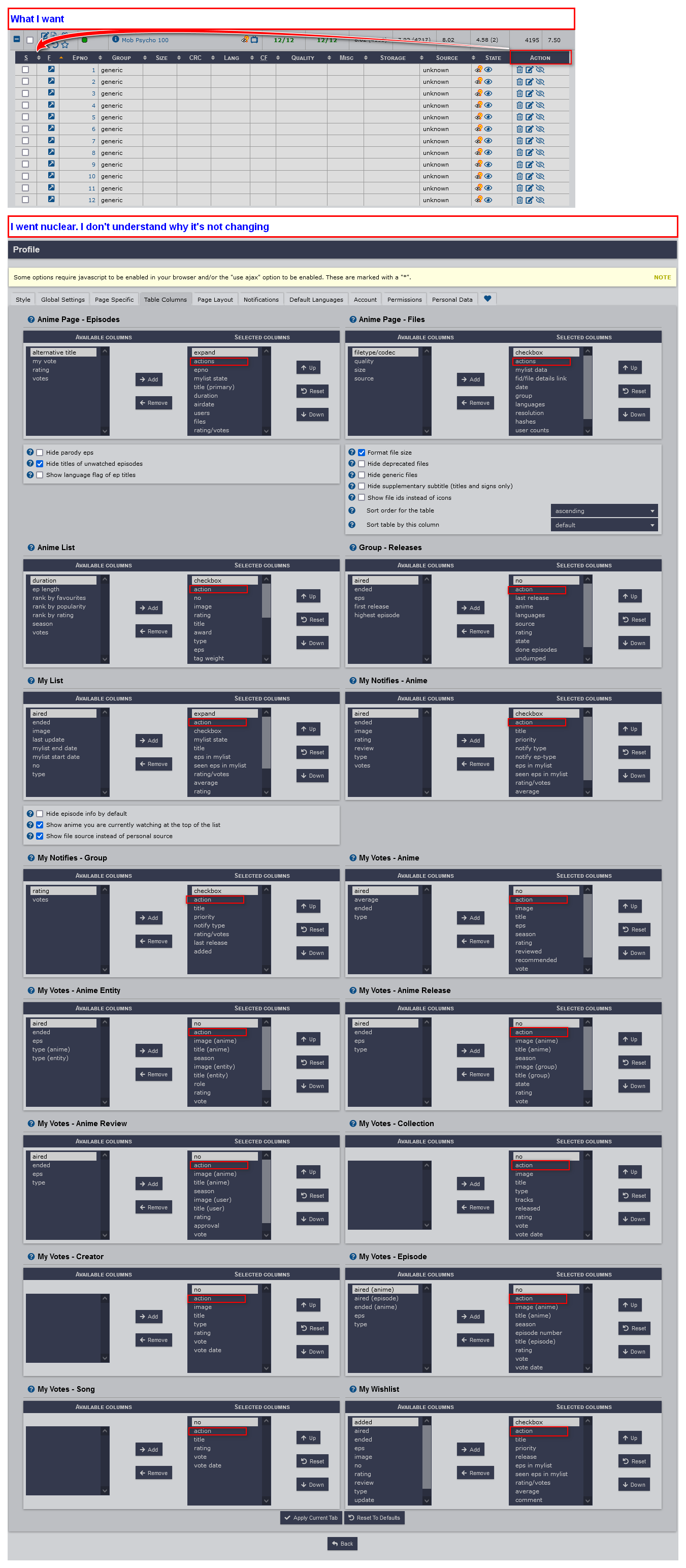 | Description | When trying to set the order of columns in settings, the Action column, when you expand to the episodes list, won't change. See image for clarity. | ||||