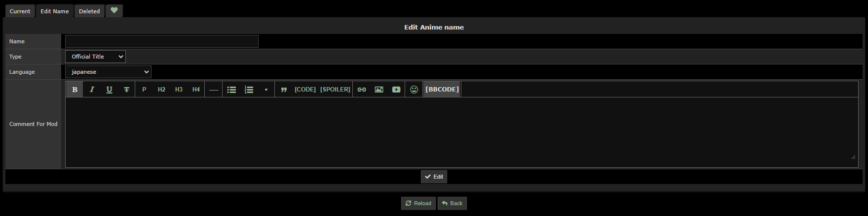 | Description | Writing detailed creq descriptions while manually writing stuff like [i], [img], or any other tags is painful and you can't preview what it will look like. And submitting the creq without any information, then going into the list of your creqs, going into the exact creq and then writing the details is even more painful. And I know I have gotten distracted before I could do so, leaving an empty creq with no explanation, a few times in the past. | ||||