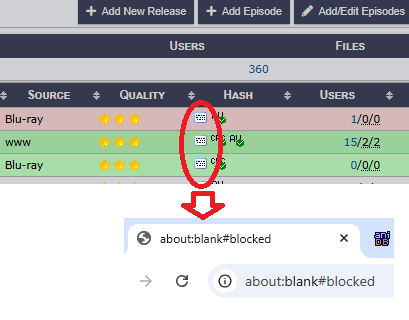| Steps To Reproduce | Select an anime and go to the episode list. Expand an episode and click the ED2K link in the hash column. | ||||
